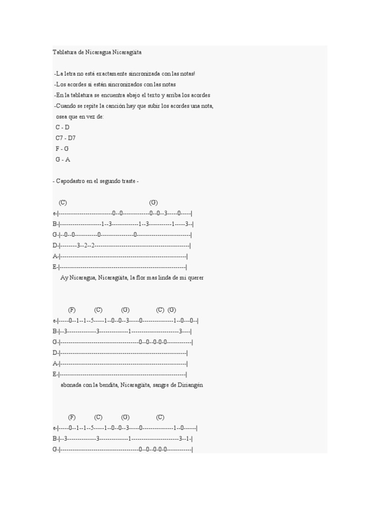 Tablatura De Nicaragua Nicaraguita Pdf Tecnicas Musicales Musicologia